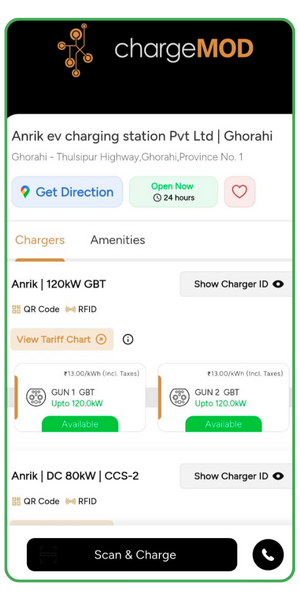 Power up on the go with our strategically placed public charging stations, ensuring easy access to EV charging across Nepal.